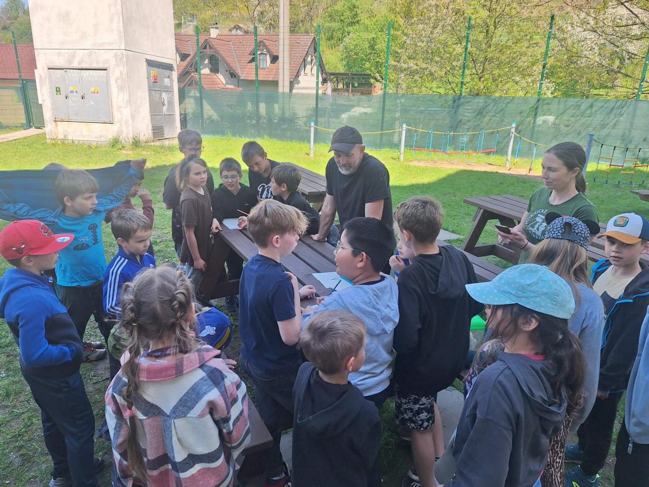 Zoolog se s dětmi podělil o své znalosti zvířat - ptáků, žab, hadů a jiných. Především byla beseda zaměřená na pobytové stopy zvířat. Děti se dozvěděly zajímavosti o různých druzích zvířat a jejich životě. Jaké zanechávají stopy si mohly vyzkoušet uhodnout a poslechnout. Děkujeme Davidovi Fisherovi a Janě Fialové z příbramského muzea.
