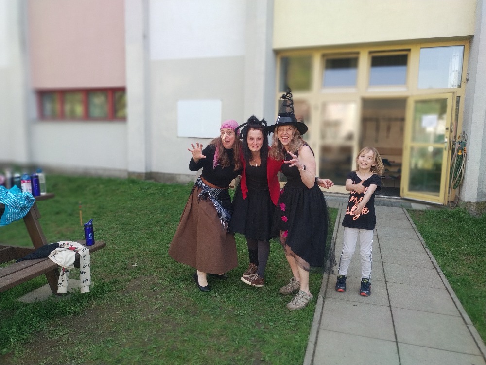 Takže se naše oddělení krásně promíchala, aby se naučila vzájemné spolupráci v týmech. Kategorie čarodějů byla rozdělena do čtyř skupin: dobrodějové, ježibaby, Gandalfové a Siriové Blackové. Dětem mělo doporučeno dorazit v kostýmu a my? Konečně jsme odhalili svou skrytou identitu. Soutěžení nebylo nijak náročné, šlo nám zejména o zábavu a o tu jsme se dětem postarali. Skákaly v pytlích, létaly na koštěti, ale asi došlo k vadě materiálu, neb se ani jedno z dítek nevzneslo. Jediné, co se vzneslo, byly škrpály během disciplíny v jejich hodu do dáli a musím uznat, že tato disciplína je nejen velmi oblíbená, ale máme v ní skvělé šampiony. Tradiční čarodějnickou dovedností je příprava kouzelných lektvarů: mládí, nesmrtelnosti, létání a neviditelnosti. Ani zde vás nepotěším, patrně nám scházela nějaká důležitá ingredience, neboť kouzlo lektvaru, ačkoliv vypadaly všechny velmi chutně, zdravě a nutričně vyváženě jak od profíků, se minulo účinkem. Tak snad příští rok najdeme kvítek mandragory a bude to dokonalé. Děkuji všem čarodějnicím, které neskončily na hranici za spoluúčast na tomto skvělém projektu.