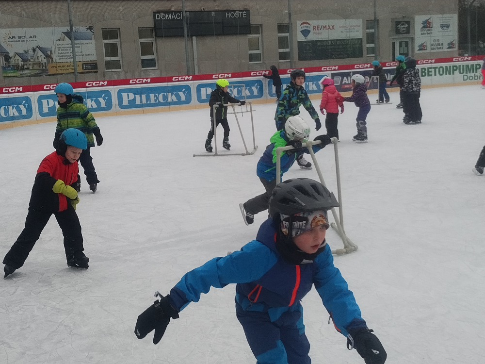 Akce školní družiny v lednu bývají klidnějšího rázu. Po předvánoční honičce; výrobky občerstvení, akce, nastává období klidu. Přesto se v družině nenudíme a tvoříme si jen tak pro radost. Téma měsíce ledna jsou zimní sporty. A abychom pouze neteoretizovali o sportu, objednali jsme pro děti dobříšský zimní stadion. Akce proběhla v pondělí 20.1. 2025 a bylo to vážně osvěžující po náročném inspekčním týdnu. Letos byl extrémní zájem o bruslení, takže pro nás vychovatelky byla výzva ukočírovat 65 dětí na ledové ploše, aniž by došlo k úrazu a přimět je k slušnému chování v hromadné dopravě. Zvládli jsme to !! Bez klasických pádů se to samozřejmě neobešlo, ale žádná zlomenina, ani řezná rána, či dokonce otřes mozku nás nepotkala. Děti si pobyt na stadionu užily, předvedly nám své umění a z ledu se jim s tvářičkami zčervenalými mrazem vůbec nechtělo. Čas vymezený na bruslení se jim zdál být krátký. Ale nadšené byly všechny děti. Rády by si to někdy zopakovaly.