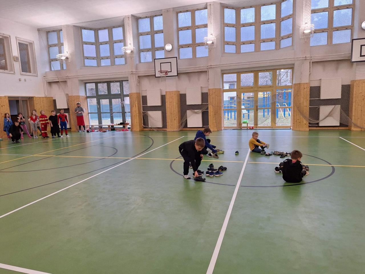 Během tance a poslechu oblíbené dětské hudby jsme si zahráli na,, molekuly“ a soutěž bačkorkobraní v družstvech podle oddělení. Děvčata z taneční skupiny Jany Šimkové Nelča a Helča, žákyně 3.A, nás naučila tanec na píseň interpreta Nathana Evanse – Wellerman. Tímto jim děkujeme za perfektně odvedenou práci a doufáme, že se holky bavily stejně skvěle jako ostatní děti. Čas nás tlačil, poslední tanec a rychle zpátky do civilu.