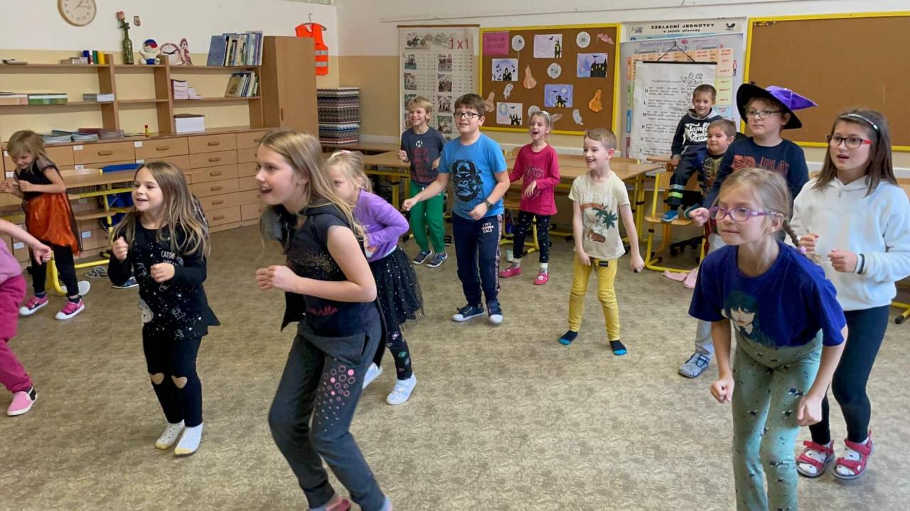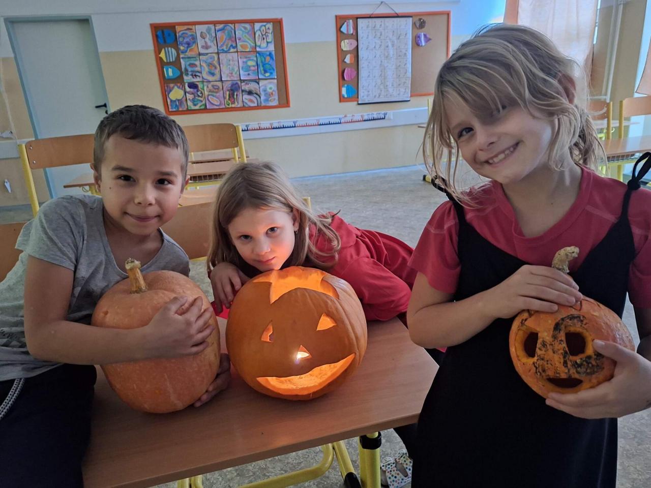 Nastal konec října a s ním nadešel i čas oslavit s dětmi halloween v družině. A to bychom to nebyli my, abychom se neposunuli na další,,level". Nejenže jsme zdobily s dětmi třídy a dlabaly dýni (za níž děkujeme Martinu Hrubému z Mokrovrat). Připravili jsme pro děti i strašidelné soutěže jako: slalom na koštěti, střelbu na dýně, pavučinové bludiště, hledání duchů, rozpoznávání předmětů v zombieslizu to vše v krásných i děsivých kostýmech. My ještě požádali naší skvělou kolegyni a vedoucí tanečního kroužku Janu Šimkovou o strašidelnou taneční choreografii. Tanec trval necelou minutu, ale děti si ho rády zatančily hned několikrát!! Odměnou pro nás vychovatelky byla radost v dětských tvářích, která za to naše úsilí prostě stojí.. Tak zase za rok Zapsala čarodějka z Kouzelného království Jana Zelenková DiS