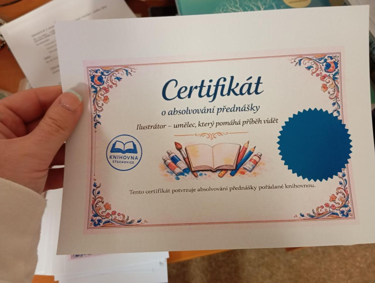 Dnes se třída 5. B zúčastnila vzdělávacího programu Ilustrátor – umělec, který pomáhá příběh vidět, který proběhl v multifunkčním centru v prostorách štěchovické knihovny. Přednáška byla zaměřena na roli ilustrací v knihách a na to, jak obrázky ovlivňují naše vnímání textu, postav i celkové atmosféry příběhu.
