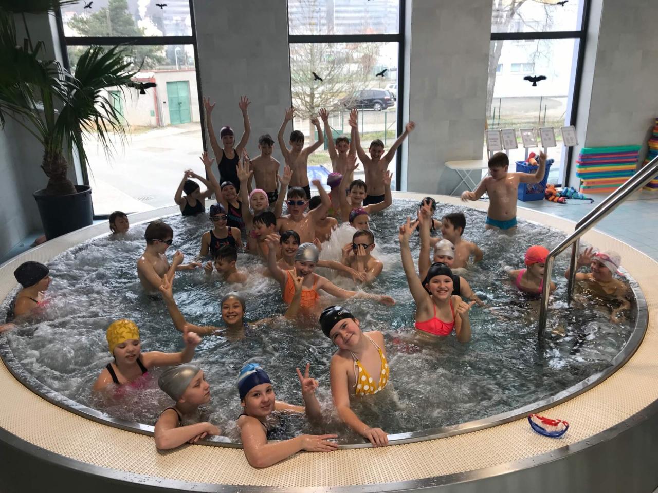 Plavecký bazén se nachází v Radotíně. Každé dítě bylo rozřazeno do skupin podle svých dovedností. Děti zdokonalují plavecké styly, potápění, skoky do vody a mnoho dalšího. Za velkou silovou práci, byly děti patřičně odměněny. Na konci výcviku si užívaly teplou vířivku. Jana Šimková