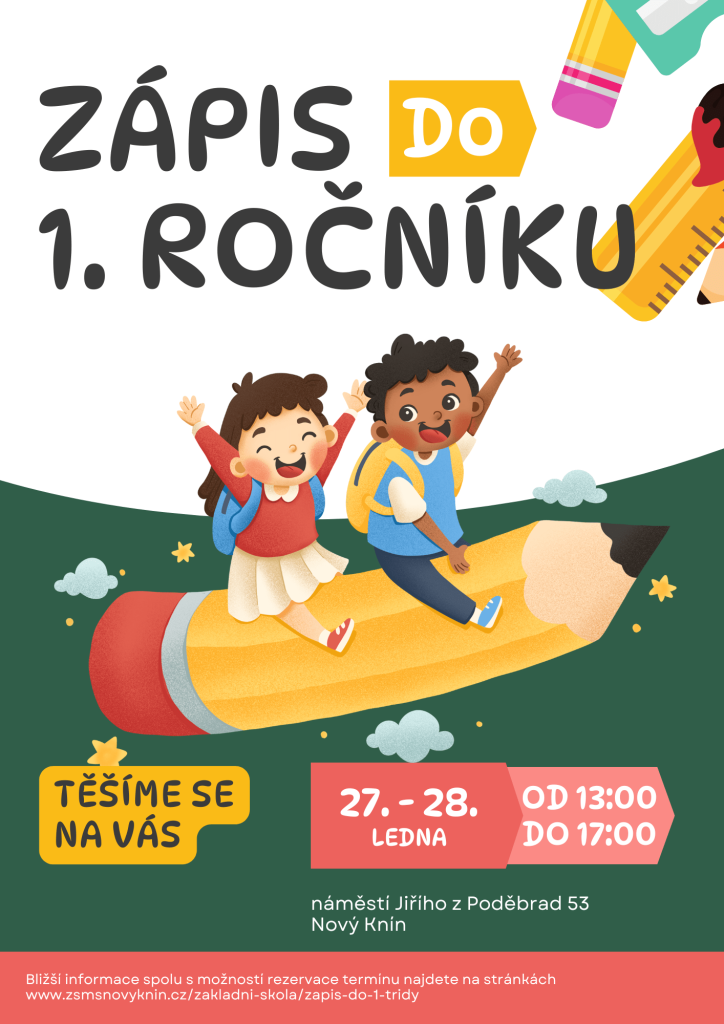 Ve dnech 27. a 28. ledna 2026 od 13:00 – 17:00 proběhne zápis do 1. tříd.